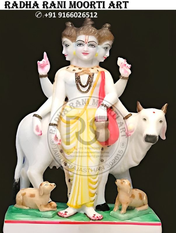 Dattatraya is a combination of three important Hindu deities, Brahma, Vishnu and Shiva. It is also considered the symbol of the Trinity. The Dattatraya Marble Moorti depicts the deities with three faces and six hands that hold various objects from tridents, rosary beads, conch, shells, discus etc. The statue is believed to possess immense power and blessing of the divine trinity and is highly valued for the intricate craftsmanship made by skilled artisans. Carved from high-quality marble, the statue is ideal for keeping at home, Temple or even at the workplace to seek the blessings of the deities. The statue also serves as the physical representation of faith and devotion, including the presence of Dattatraya in the lives of the people.